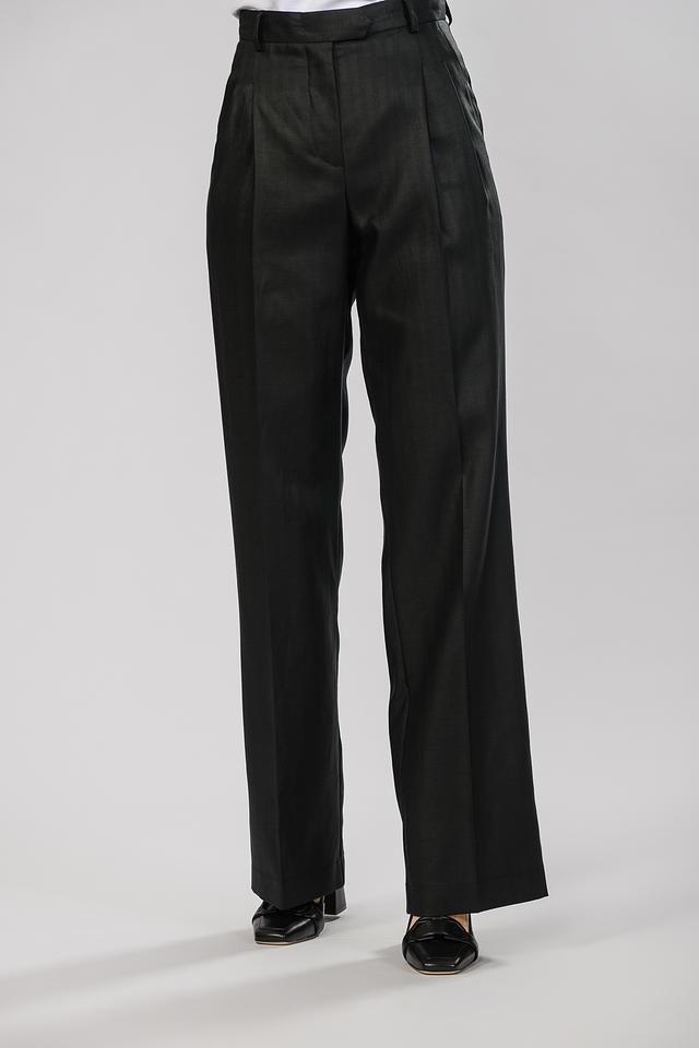 Дизайн брюк дополнен широким поясом с защипами, которые создают аккуратные складки и придают брюкам более изысканный вид. Боковые карманы обеспечивают функциональность и удобство. Данная модель станет отличным дополнением к вашему гардеробу и позволит создавать разнообразные образы — от деловых до повседневных.