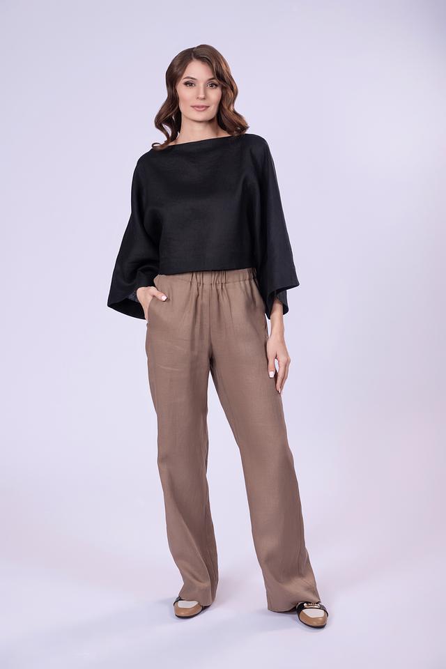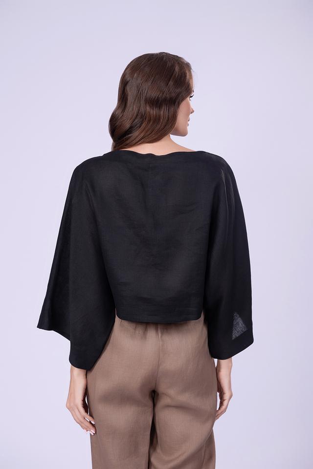 Чёрная блуза от Shade из 100% льна — это стильное и комфортное решение для создания лёгкого и воздушного образа. Модель имеет свободный крой и оригинальные рукава-крылья, которые придают ей особый шарм. Состав: лен 100%