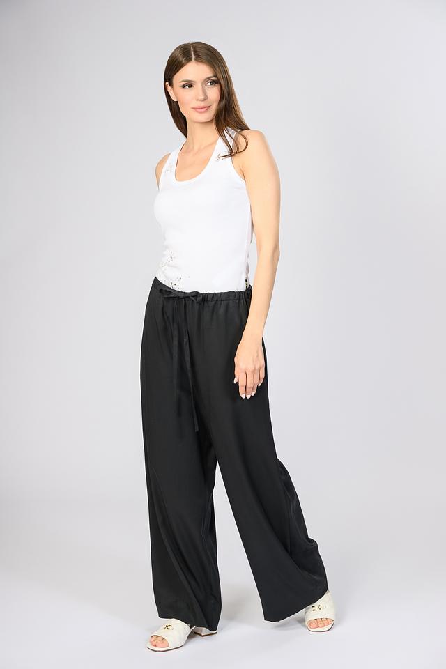Чёрные брюки палаццо от Shade — это воплощение комфорта и элегантности. Модель выполнена из 100% луоселла, что обеспечивает приятные тактильные ощущения и лёгкость в уходе. Брюки имеют свободный крой и пояс на завязках. Состав: луоселл 100%