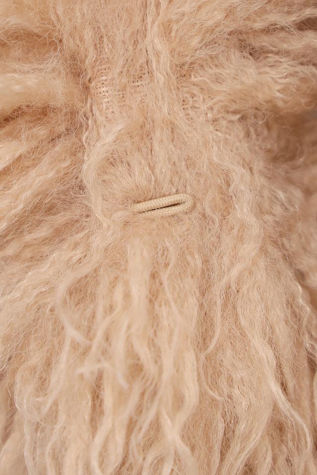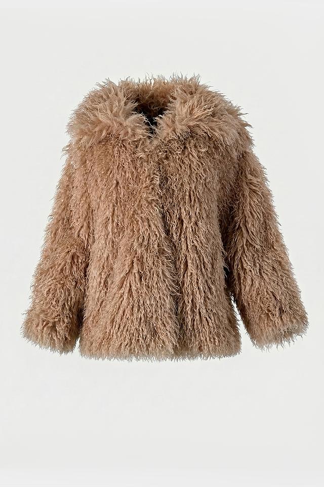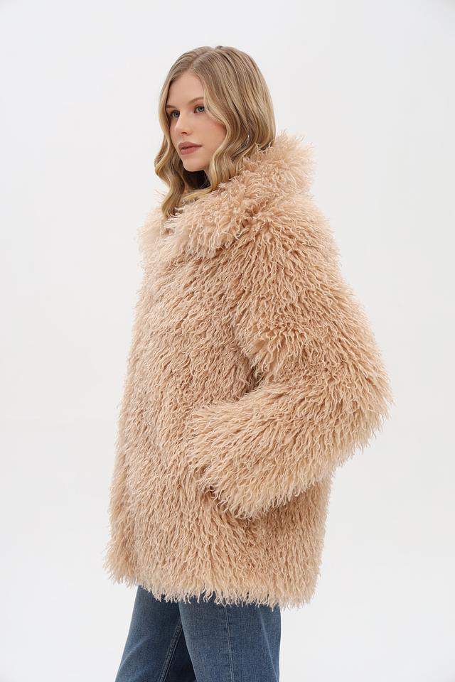 Куртка имеет свободный крой, который не сковывает движения и позволяет создавать многослойные образы. Длинный ворс придает изделию роскошный вид и приятные тактильные ощущения. Отсутствие застежек делает куртку легкой и удобной в носке.