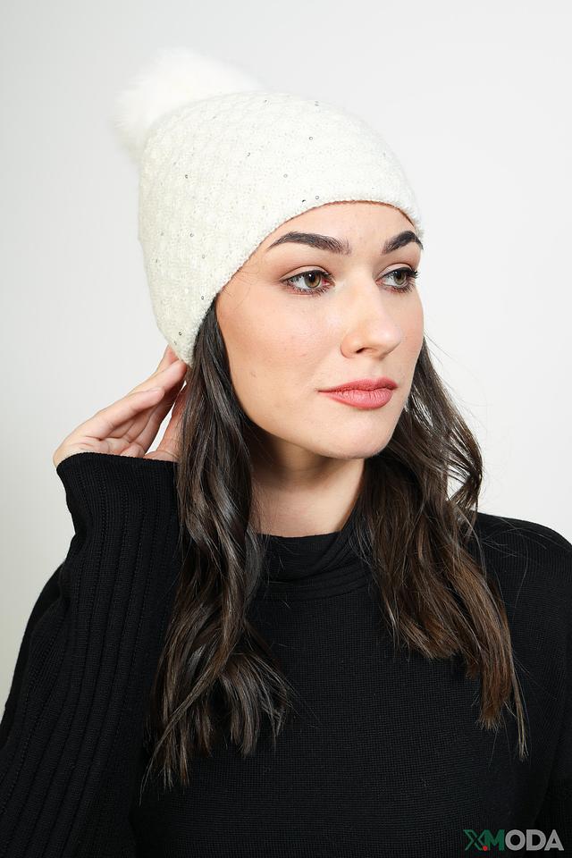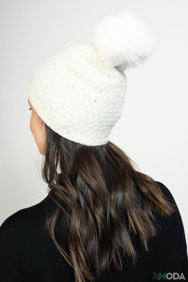 Шапка Leo & Ugo с помпоном белая