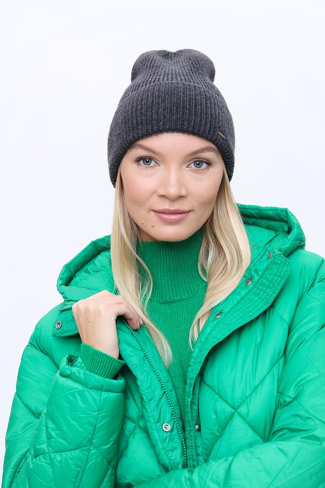 Шапка имеет лаконичный дизайн, дополненный небольшим металлическим логотипом бренда. Цвет шапки – серый, что делает ее универсальной и легко сочетаемой с различными элементами гардероба. Эта шапка станет отличным дополнением к вашему образу и защитит от холода.