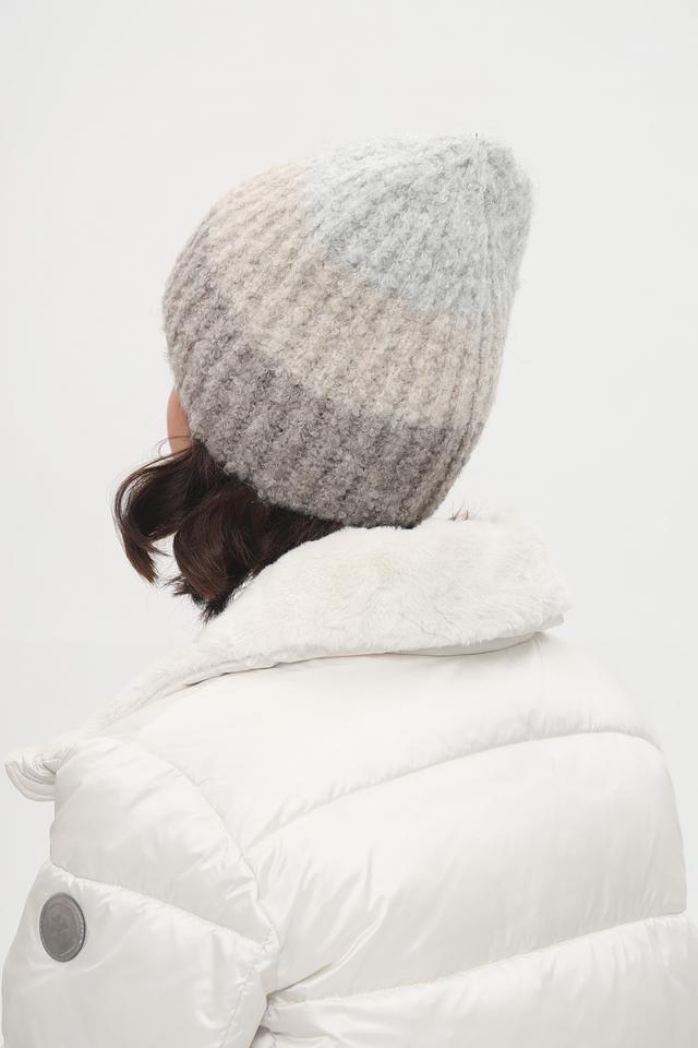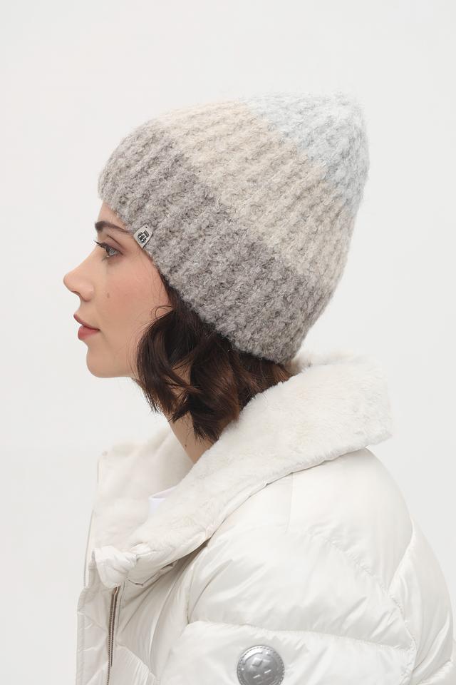 Шапка изготовлена из высококачественных материалов: 53% полиэстер, 25% ацетат, 17% шерсть, 3% полиамид и 2% эластан. Такое сочетание обеспечивает не только тепло, но и долговечность изделия.