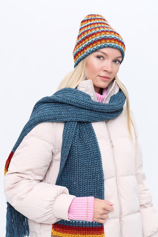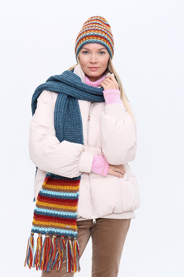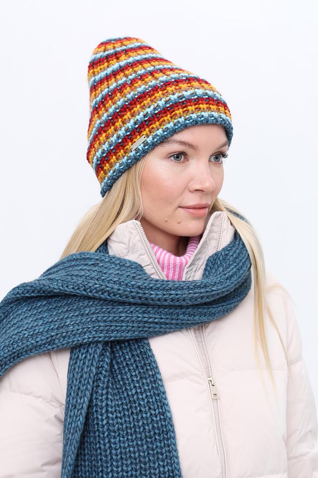 Женская шапка Seeberger ярких цветов выполнена в полосатом дизайне. Модель изготовлена из мягкого сочетания полиакрила и шерсти, обеспечивающего комфорт и тепло в холодное время года. Состав: полиакрил 70%, шерсть 30%