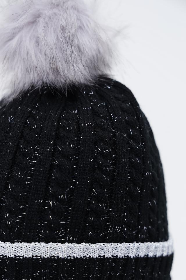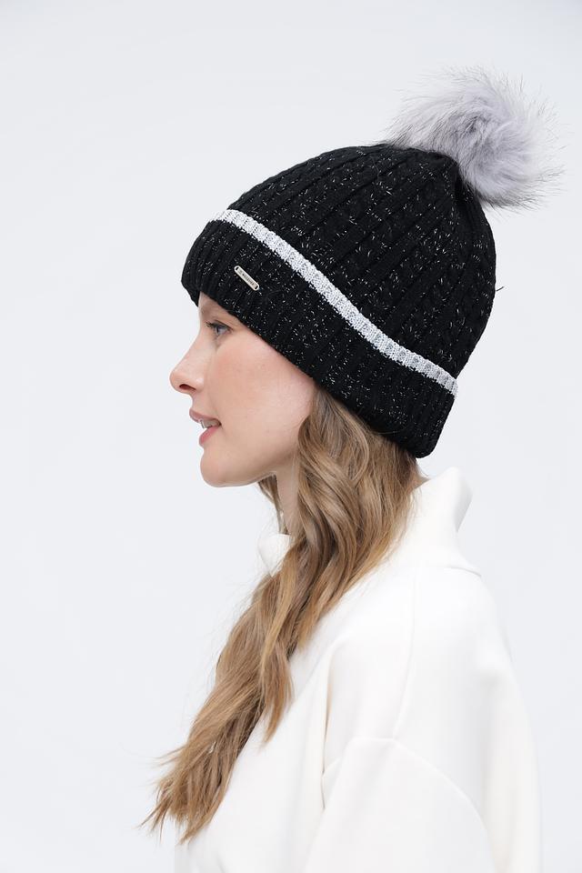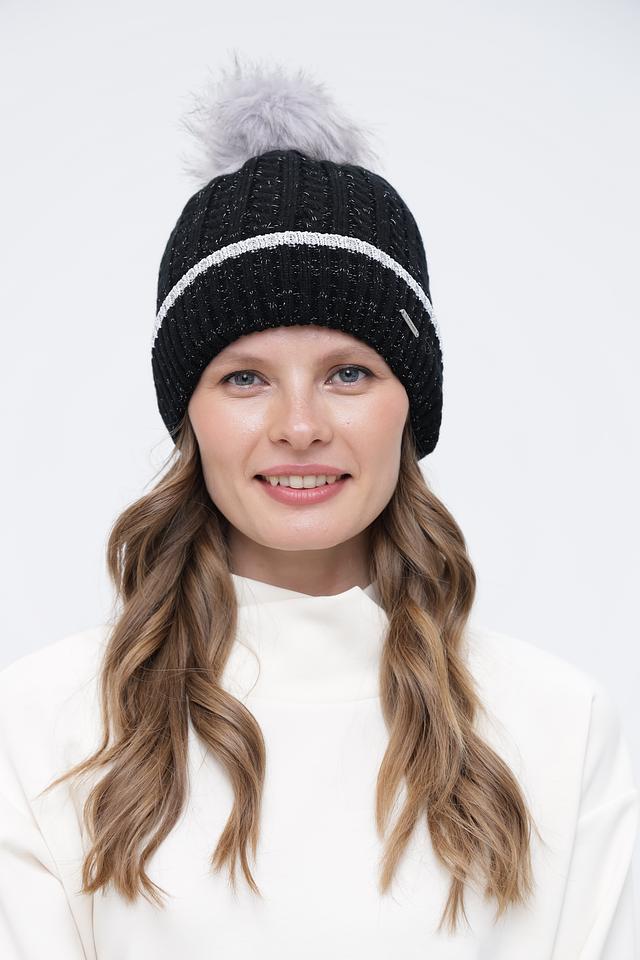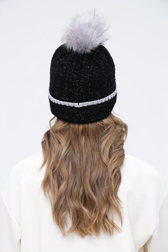Чёрная вязаная шапка Wegener с помпоном и серебристой полосой – стильный и тёплый аксессуар для зимнего сезона. Модель выполнена из мягкого полиакрила, обеспечивающего комфорт и удобство в носке. Состав: полиакрил 100%