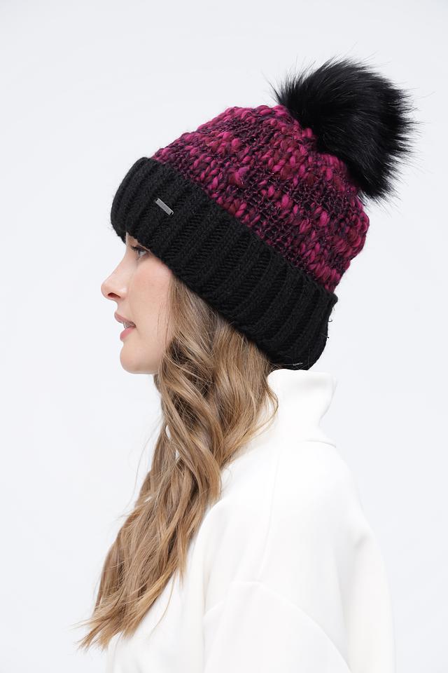 Женская шапка Wegener фуксия и чёрного цвета с помпоном из искусственного меха. Модель выполнена в комбинированной вязке, сочетающей гладкую и фактурную текстуру, что придает ей стильный и современный вид. Состав: полиакрил 72%, шерсть 15%, альпака 9%, полиэстер 3%, полиамид 1%