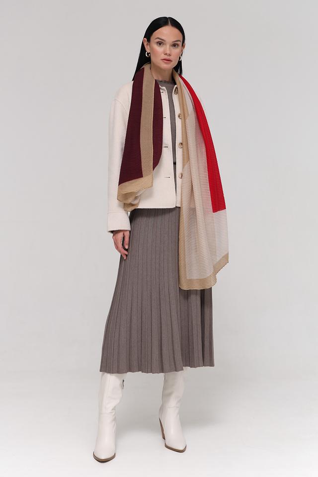 Этот шарф от Bianca станет ярким акцентом в вашем гардеробе. Он выполнен в блочном дизайне, сочетающем в себе несколько оттенков красного, бежевого и бордового, создавая интересный и современный вид.