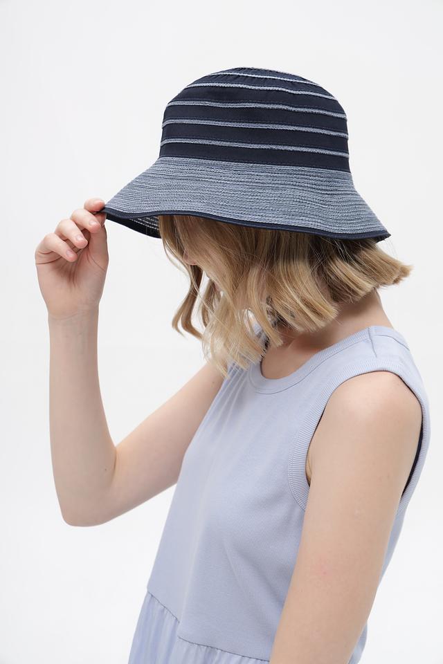 Шляпа от Loevenich синего и голубого цвета – стильный аксессуар с полосатым дизайном и декоративной аппликацией. Изготовлена из 100% полиэстера, обеспечивающего легкость и комфорт. Состав: полиэстер 100%