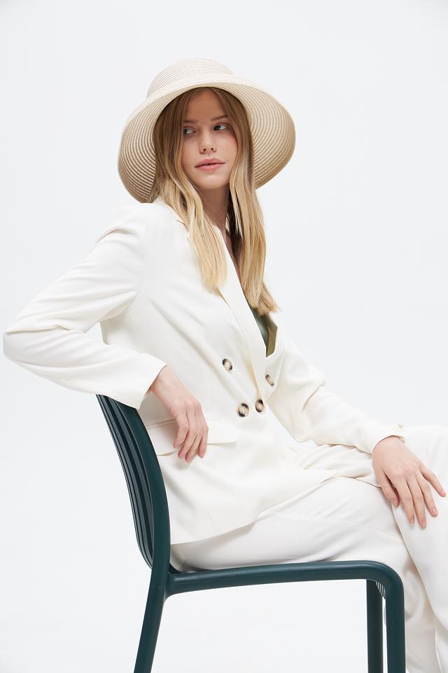 Благодаря своему нейтральному бежевому цвету, эта шляпа легко сочетается с различными нарядами, добавляя им завершенность и стиль.