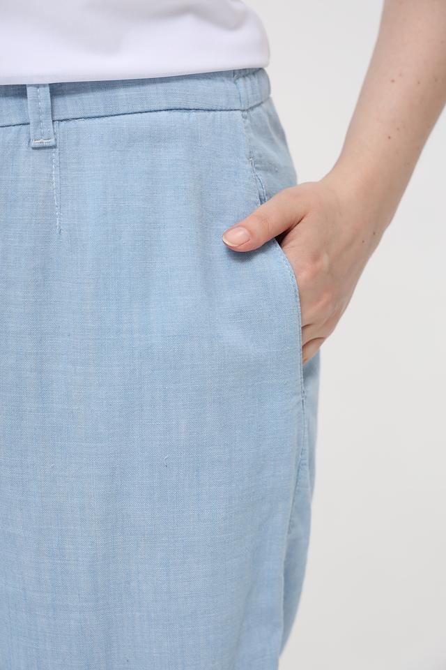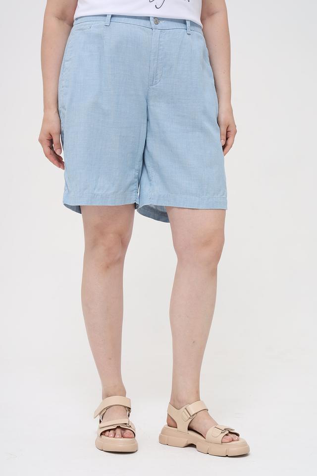 Шорты имеют прямой крой и классическую посадку, что делает их универсальными и подходящими для различных типов фигур. Голубой цвет добавляет свежести и легкости образу.