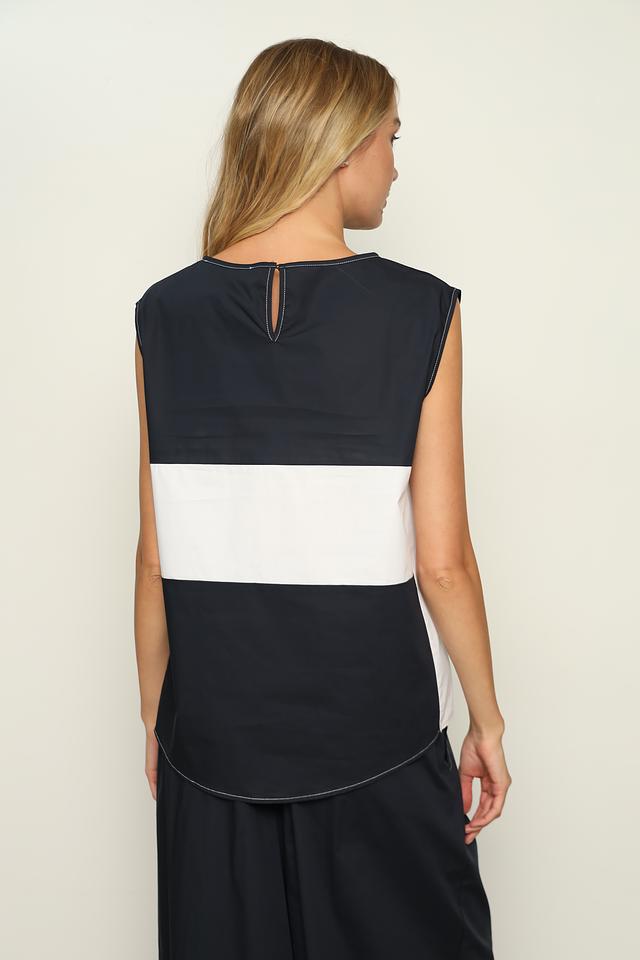 Блуза Silvian Heach чёрно-белого цвета – это стильная и лаконичная модель без рукавов. Выполнена из 100% хлопка, обеспечивающего комфорт в носке. Блуза имеет свободный крой и оригинальный дизайн с цветовыми блоками. Состав: хлопок 100%
