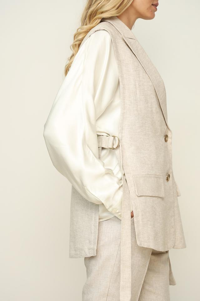 Бежевый жакет-жилет от Silvian Heach – стильное и современное решение для создания многослойных образов. Модель выполнена из льна с хлопком, имеет классический крой и застегивается на пуговицы. Состав: лен 55%, хлопок 45%