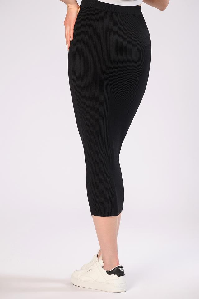 Юбка имеет прямой крой и длину миди, что делает ее подходящей для различных случаев – от офиса до вечерней прогулки. Эластичный пояс обеспечивает удобную посадку и не сковывает движений.