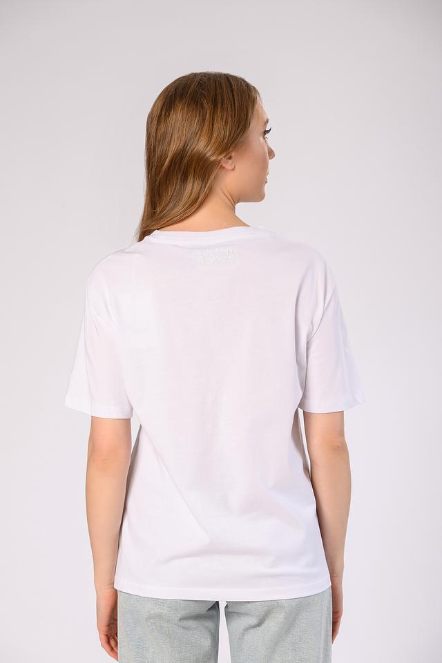 Эта футболка станет отличным дополнением к вашему повседневному гардеробу, позволяя создавать стильные и комфортные образы. Она прекрасно сочетается с джинсами, шортами, юбками и другими элементами одежды.