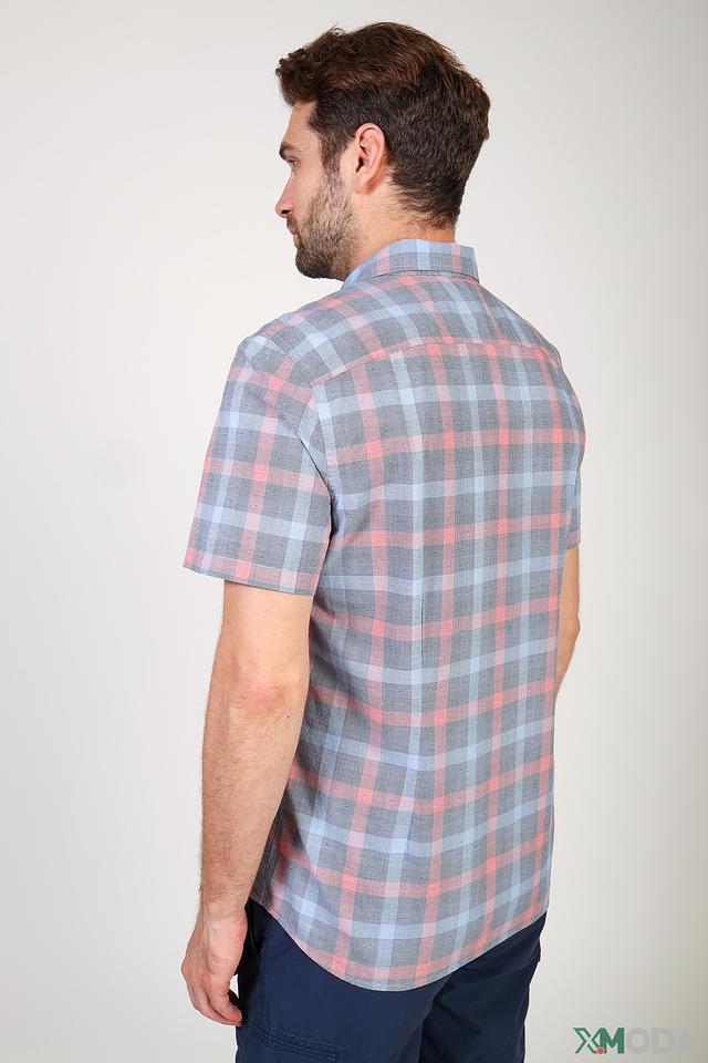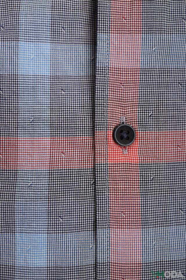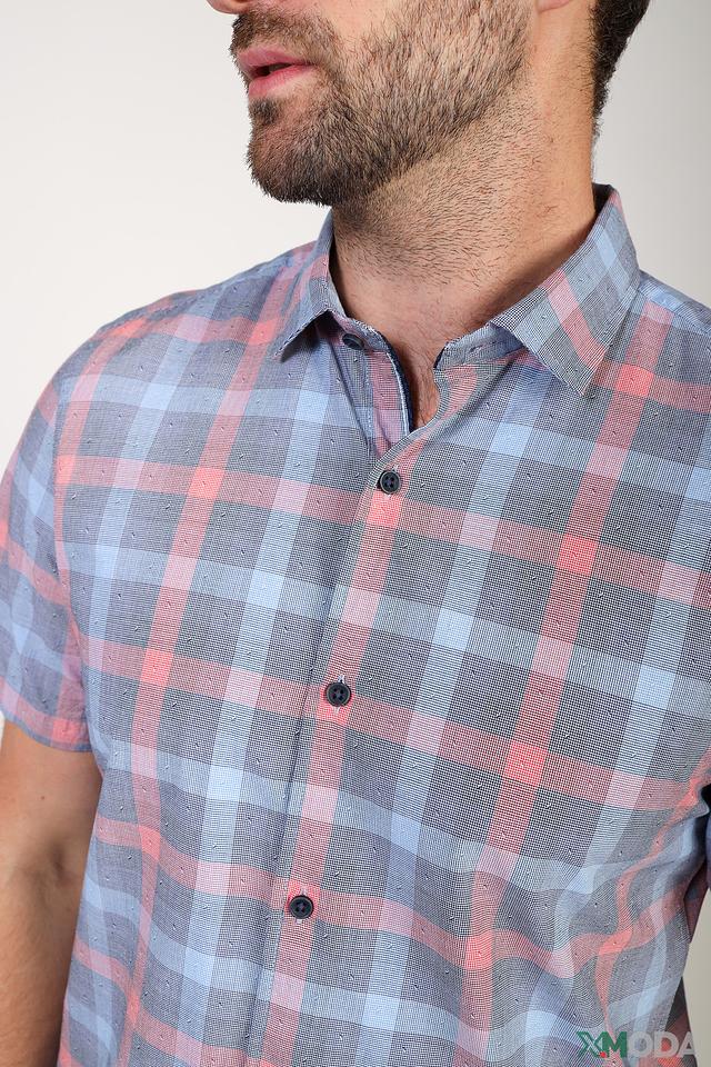 Рубашка имеет классический крой Slim Fit, который подчеркивает фигуру, не сковывая движений. Оригинальный клетчатый принт в светло-голубых и персиковых тонах придаёт образу свежесть и лёгкость.