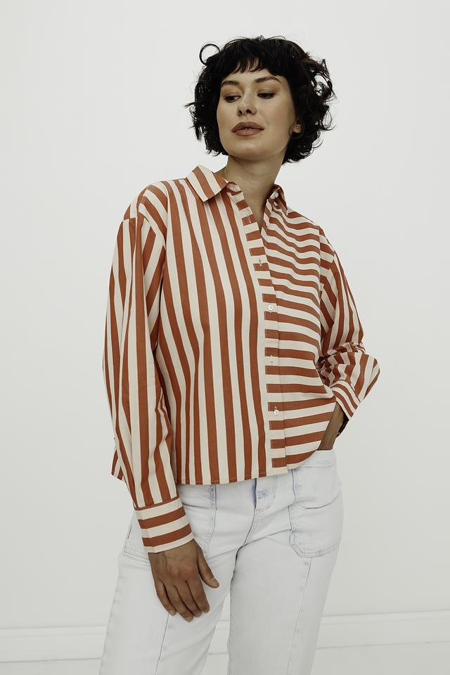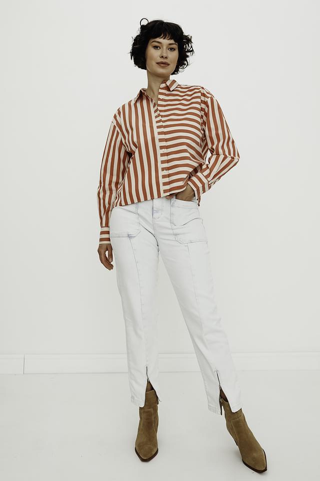 Женская рубашка s.Oliver оранжево-белой расцветки с длинным рукавом. Изготовлена из 100% хлопка, обеспечивающего комфорт и воздухопроницаемость. Стильный вариант для создания повседневных образов. Состав: хлопок 100%