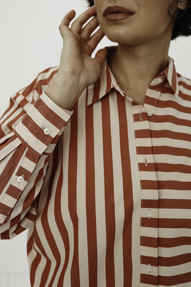 Рубашка застегивается на пуговицы по всей длине. Манжеты на рукавах также застегиваются на пуговицы. Модель идеально подходит для создания как повседневных, так и более нарядных образов. Ее можно сочетать с джинсами, брюками или юбками.
