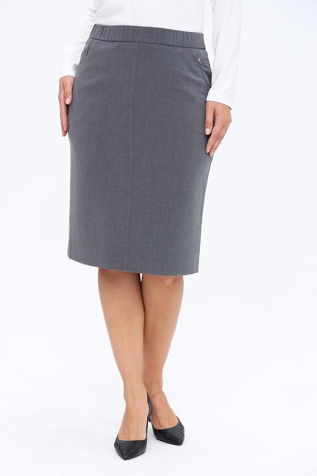 Юбка имеет прямую посадку и длину до колена, что делает ее подходящей для офиса и других официальных мероприятий. Эластичный пояс обеспечивает комфортную посадку по фигуре, а боковые карманы добавляют функциональности.