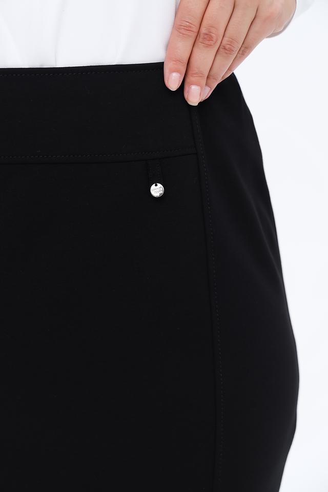 Юбка имеет прямую посадку по фигуре, подчеркивающую достоинства силуэта. Ткань приятна на ощупь и обеспечивает комфорт при носке. Небольшая декоративная петля с пуговицей на талии добавляет изысканности.