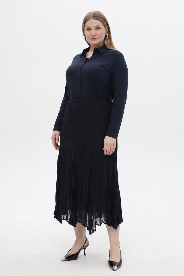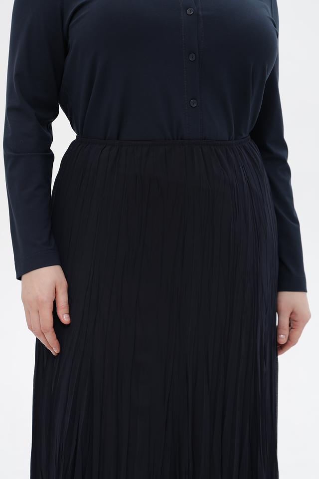 Модель выполнена из легкой ткани с мелкой плиссировкой, что придает ей изысканный вид и обеспечивает комфорт в носке.