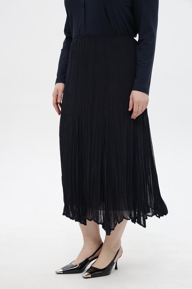 Черная плиссированная юбка Sommer mann длиной миди. Выполнена из легкой, струящейся ткани с асимметричным подолом. Отличный вариант для создания элегантного и стильного образа. Состав: полиэстер 100%