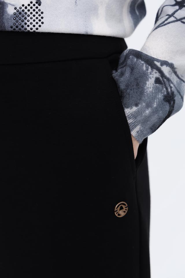 Брюки дополнены небольшой декоративной деталью в виде металлического элемента с логотипом бренда. Идеально подойдут для создания как повседневных, так и более формальных образов. Состав: 40% хлопок, 40% вискоза, 14% полиамид, 6% эластан.