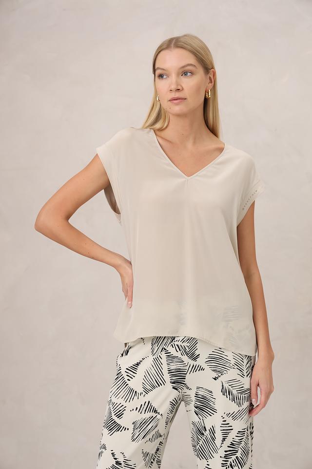 Бежевая блуза Sportalm с V-образным вырезом – это стильная и комфортная модель из шелка и хлопка. Легкий крой и короткие рукава делают ее идеальным выбором для теплой погоды. Состав: шелк 100%, Состав_2 хлопок 50%, Состав_2 модал 50%