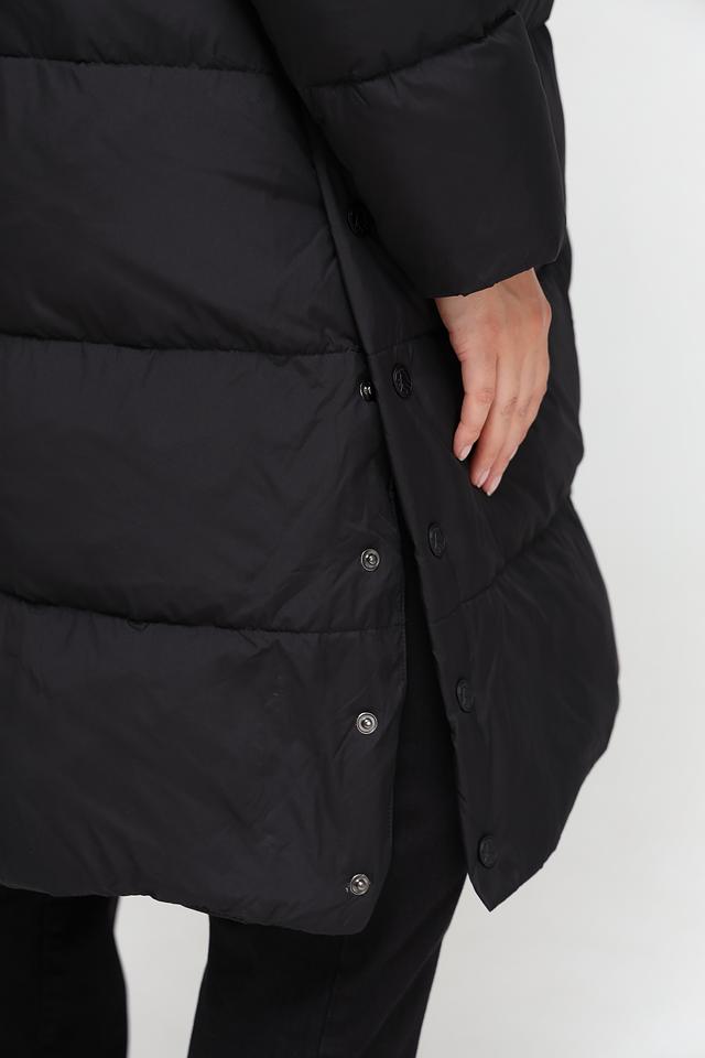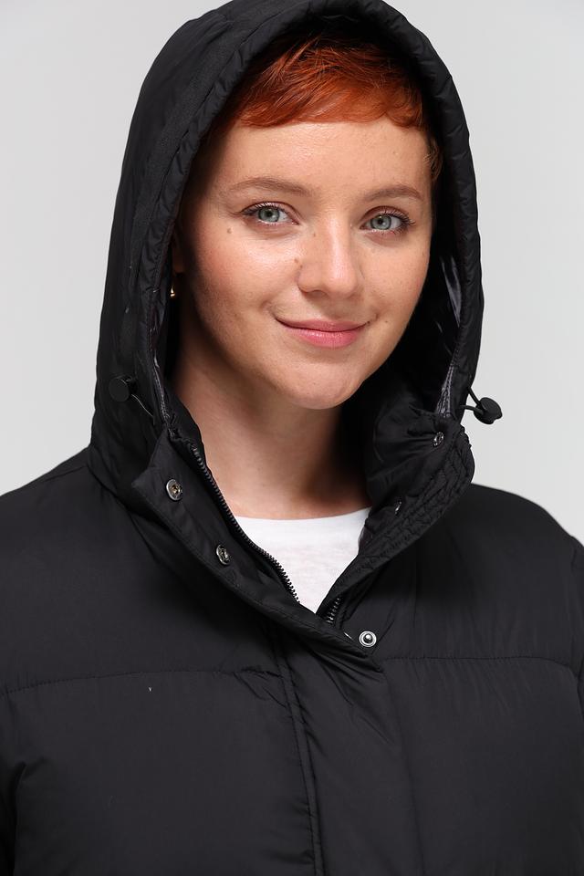 Куртка имеет стеганую текстуру, которая не только придает ей стильный вид, но и обеспечивает хорошую теплоизоляцию. Капюшон защитит от ветра и осадков, а удлиненный крой – от холода.