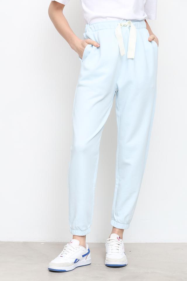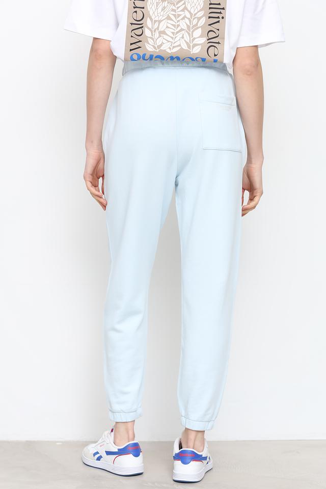 Брюки имеют прямой крой, эластичный пояс с регулируемым шнурком и удобные боковые карманы. Манжеты внизу брюк обеспечивают плотное прилегание и предотвращают попадание холода. Нежный голубой цвет делает эту модель универсальной и легко сочетаемой с различными элементами гардероба.