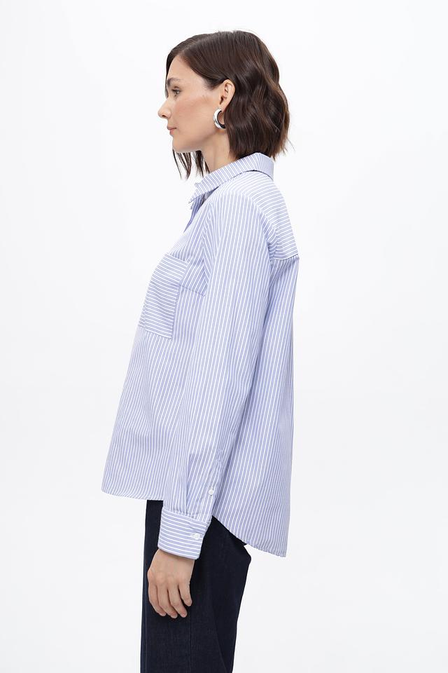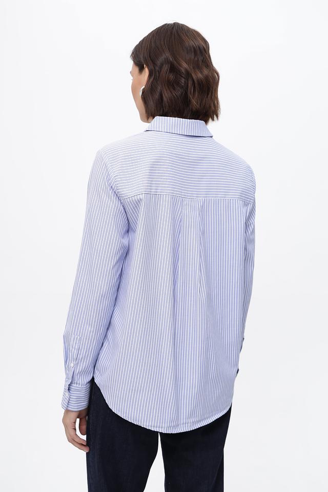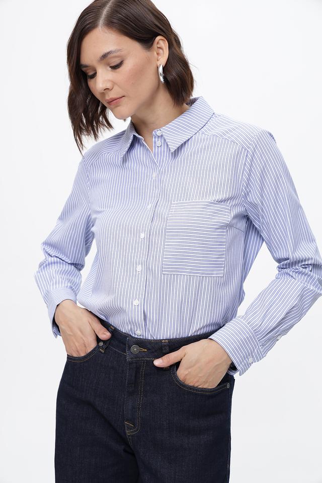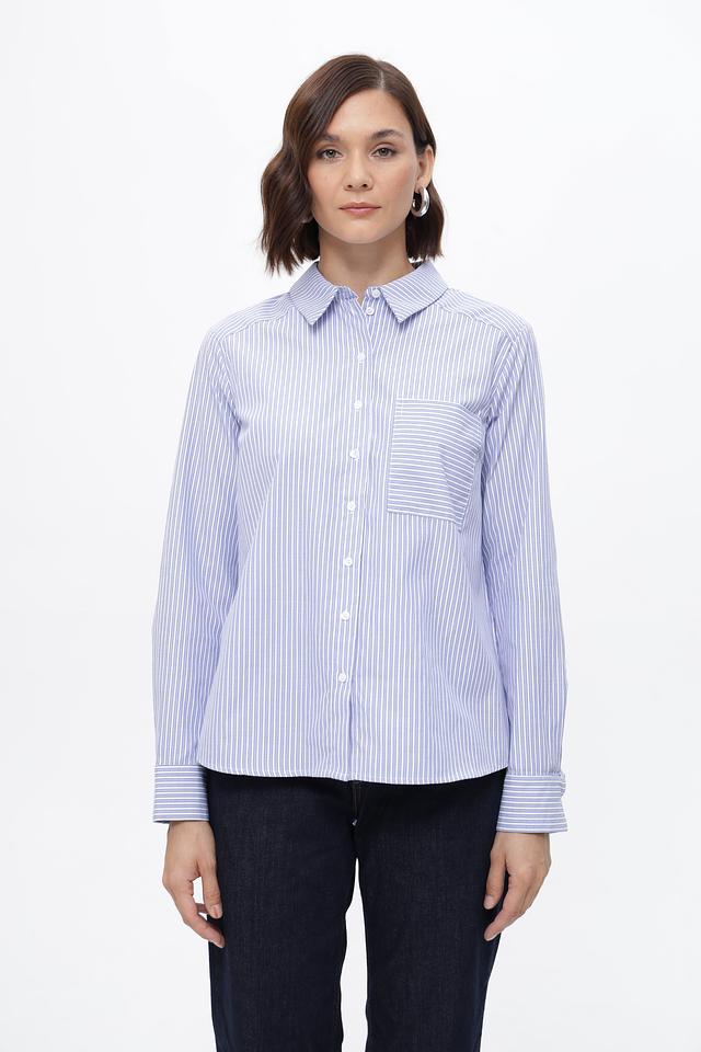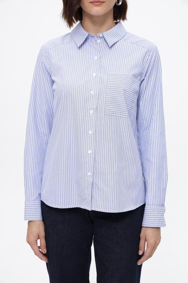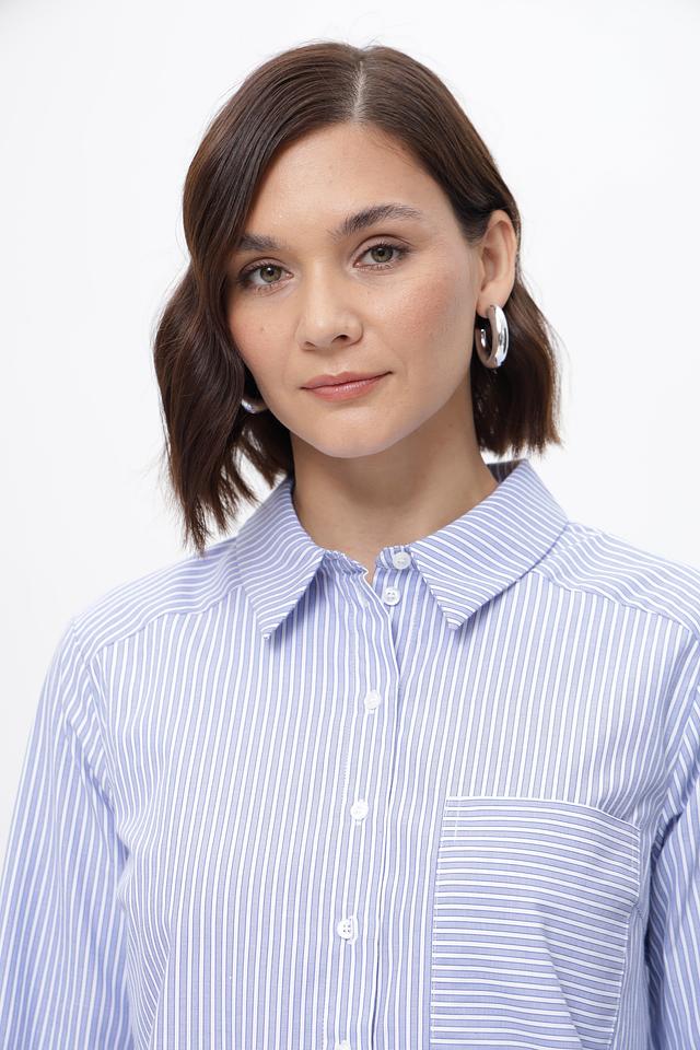 Женская рубашка Steilmann голубого цвета в классическую полоску. Изготовлена из смесового хлопка с добавлением полиэстера для комфорта и износостойкости. Стильное и универсальное решение для повседневного гардероба. Состав: хлопок 50%, полиэстер 50%