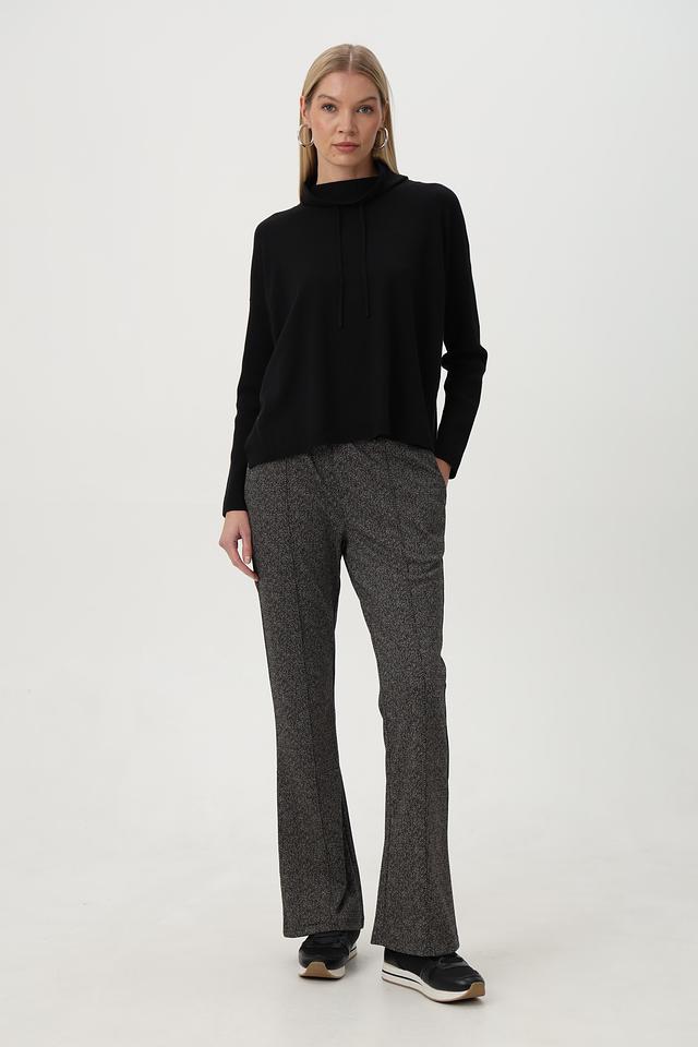 Представляем брюки от бренда Steilmann, выполненные в сером цвете с характерным узором «елочка». Модель имеет расклешенный силуэт, который визуально удлиняет ноги и создает элегантный образ.