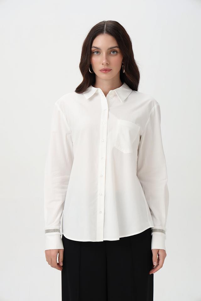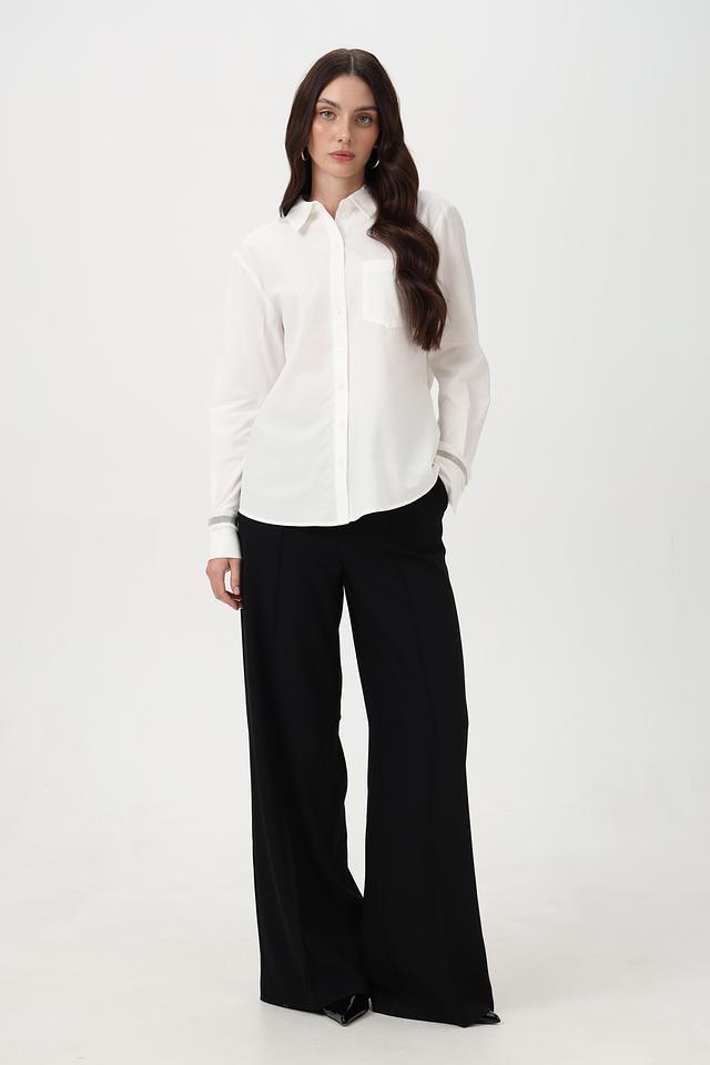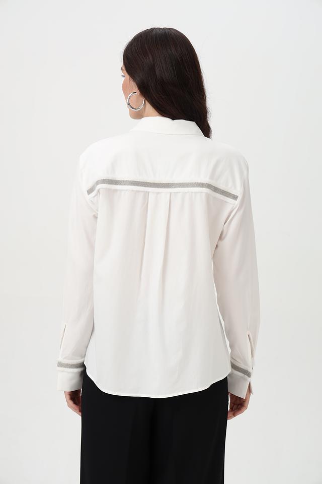 Белая рубашка Steilmann из хлопка и модала с длинным рукавом, декорированная серой полоской на манжетах. Классический крой и натуральный состав обеспечивают комфорт и элегантный вид. Состав: хлопок 50%, модал 50%