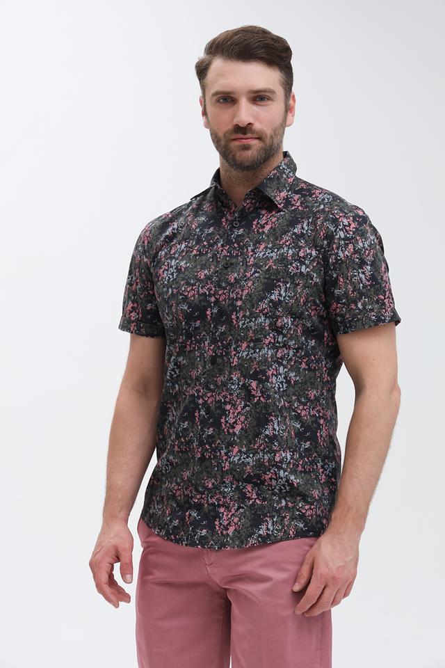 Мужская рубашка Strellson с коротким рукавом, выполнена в чёрном цвете с цветочным принтом. Изготовлена из хлопка и луоселла, обеспечивающих комфорт и воздухопроницаемость. Состав: хлопок 58%, луоселл 42%