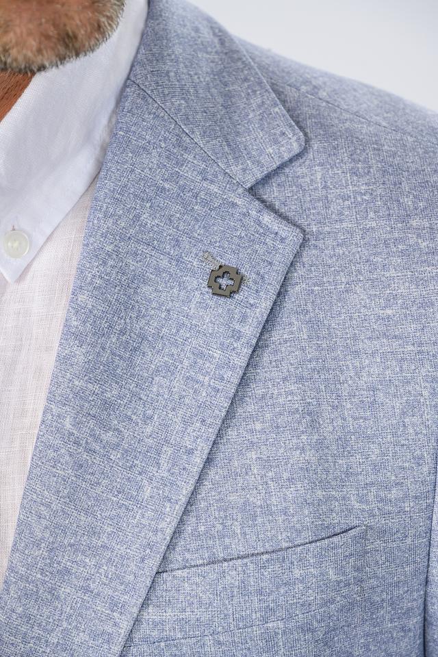 Текстурированная ткань придает пиджаку особый шарм и делает его более интересным. Застежка на пуговицы обеспечивает надежную фиксацию. Пиджак имеет стандартные лацканы.