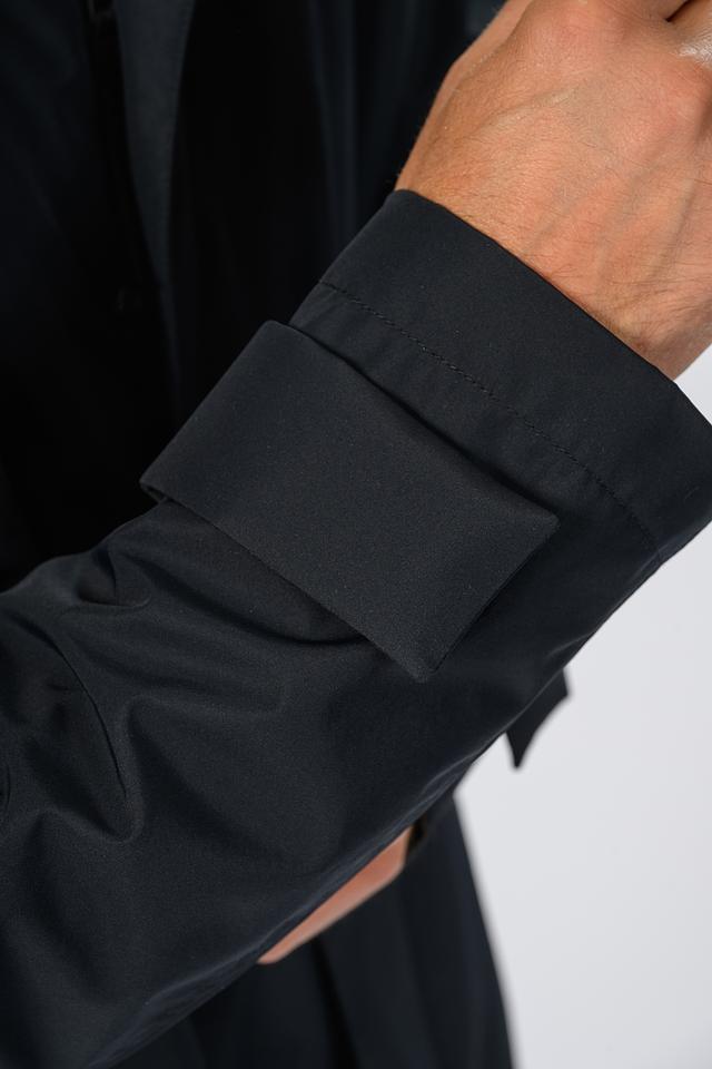 Пальто имеет прямой крой, воротник-стойку и застёжку на молнию и кнопки. Накладные карманы добавляют функциональности, а лаконичный дизайн делает его подходящим для различных стилей одежды.