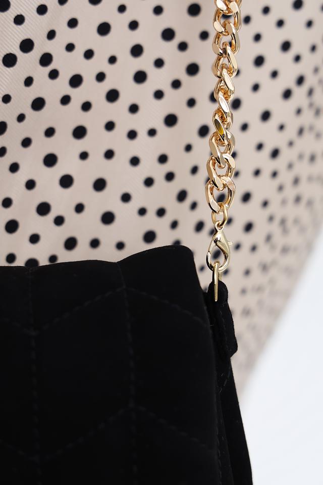 Стеганый узор придает сумке особый шарм и текстуру. Модель оснащена удобной цепочкой-ручкой золотистого цвета, позволяющей носить ее на плече или через плечо.