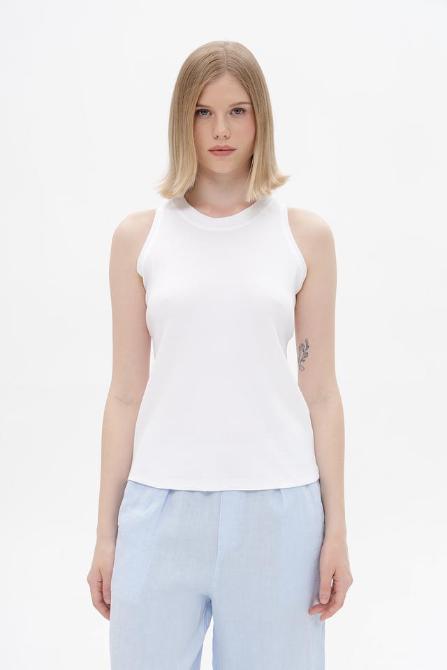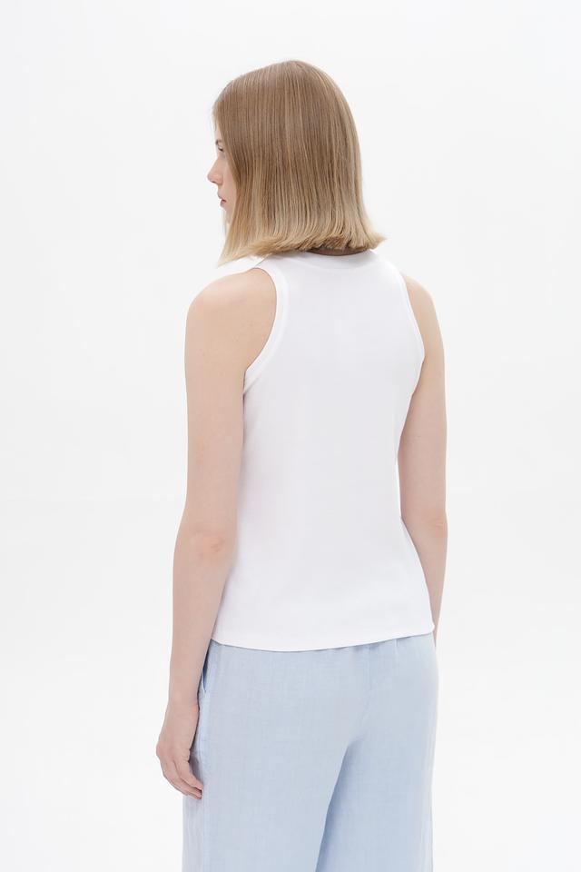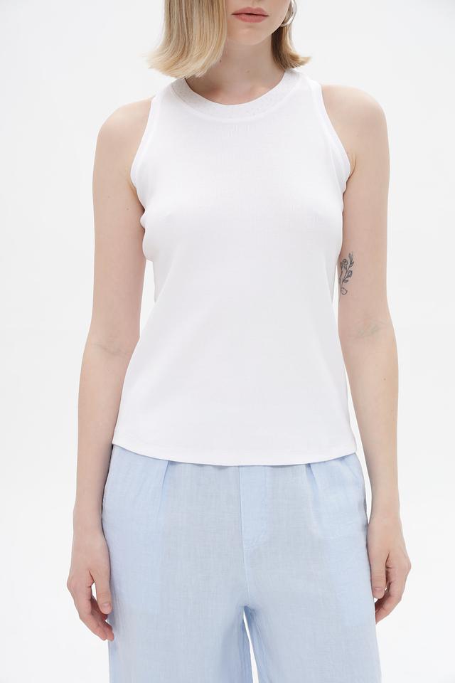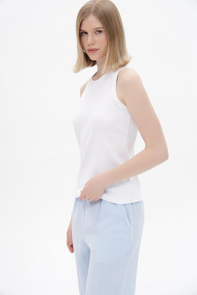 Топ имеет классический крой без рукавов и круглый вырез горловины. Он идеально сочетается с джинсами, брюками, юбками и шортами, позволяя создавать разнообразные образы.