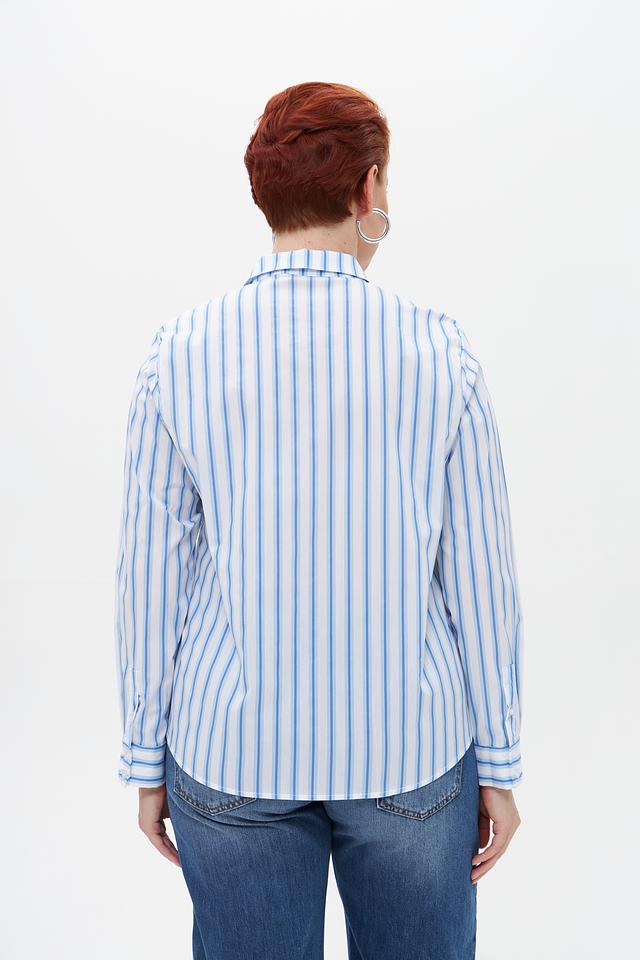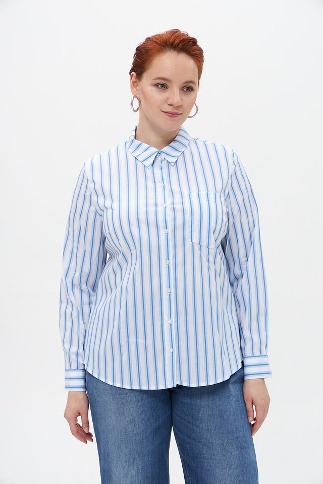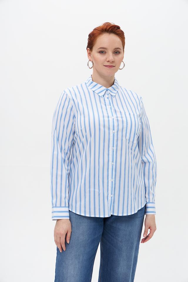 Женская блузка Suza голубого цвета в вертикальную полоску. Изготовлена из смесового хлопка с добавлением полиамида и эластана, обеспечивающего комфорт и удобство в носке. Состав: хлопок 67%, полиамид 28%, эластан 5%