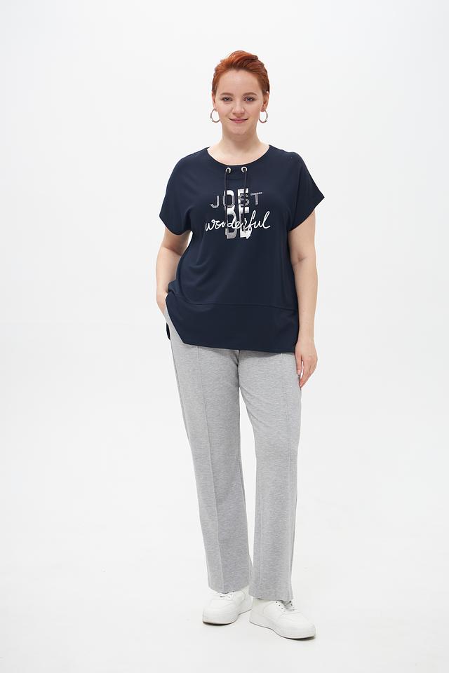 Брюки имеют удобную посадку благодаря эластичному поясу с регулирующим шнурком. По боковым швам выполнены декоративные вытачки, которые визуально удлиняют ноги и придают брюкам более изысканный вид. Изготовлены из мягкой и приятной к телу ткани, состоящей из вискозы, полиамида и эластана.
