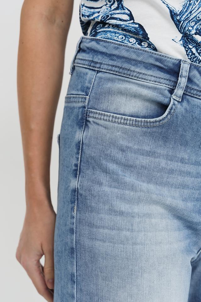 Светло-голубые джинсы-кюлоты от Taifun – стильное и комфортное решение для повседневного образа. Модель выполнена из мягкого хлопка с добавлением лиоцела и эластана, обеспечивающих удобную посадку и свободу движений. Эффектный деним с потертостями добавит образу непринужденности. Состав: хлопок 80%, лиоцел 15%, эластомультиэстер 3%, эластан 2%