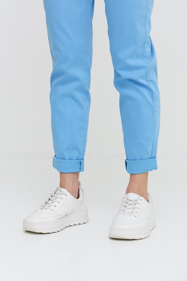 Брюки имеют стандартную посадку, прямой крой и небольшие подвороты внизу. Они идеально сочетаются с различными видами обуви и одежды, позволяя создавать разнообразные образы. Задние карманы накладные.
