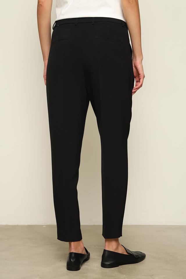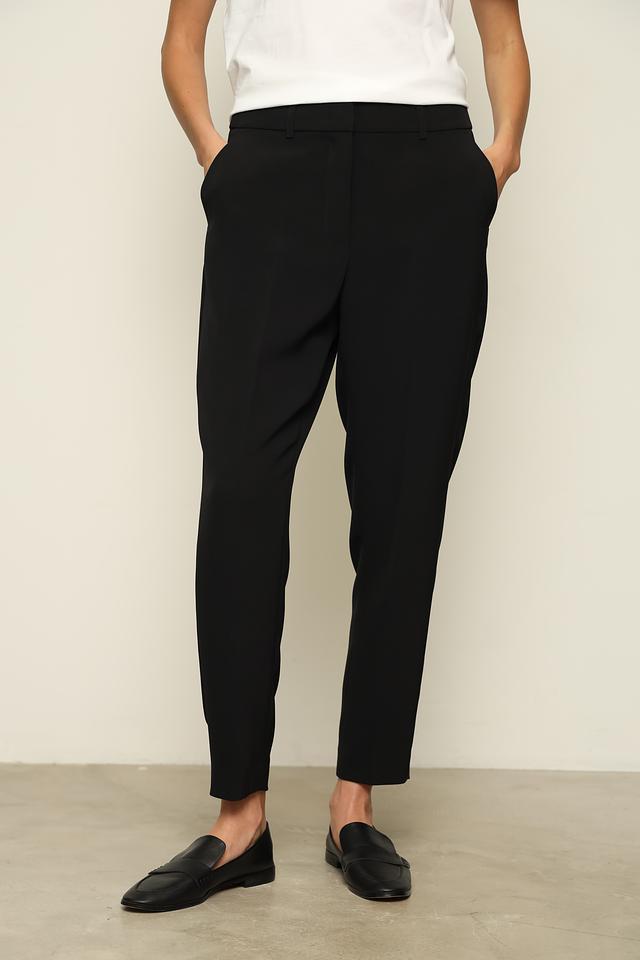 Брюки имеют прямой крой и стандартную посадку по фигуре, обеспечивая комфорт в носке. Ткань, состоящая из полиэстера и эластана, приятна на ощупь, хорошо держит форму и практически не мнется.
