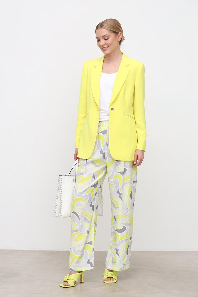 Жакет имеет стандартную длину, длинные рукава и лацканы. Боковые карманы добавляют функциональности. Подходит для создания как деловых, так и повседневных образов. Состав: 95% полиэстер, 5% эластан.