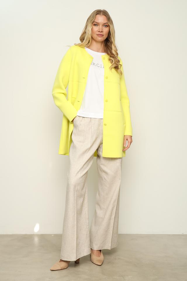 Этот жакет от Taifun станет ярким акцентом вашего образа. Выполненный в насыщенном лаймовом цвете, он привлекает внимание и подчеркивает индивидуальность.