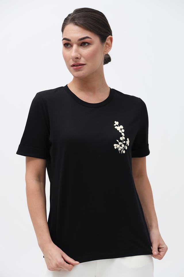 Чёрная футболка Taifun из 100% органического хлопка с нежным цветочным принтом. Классический крой и мягкий материал обеспечивают комфорт в повседневной носке. Состав: хлопок органич. 100%