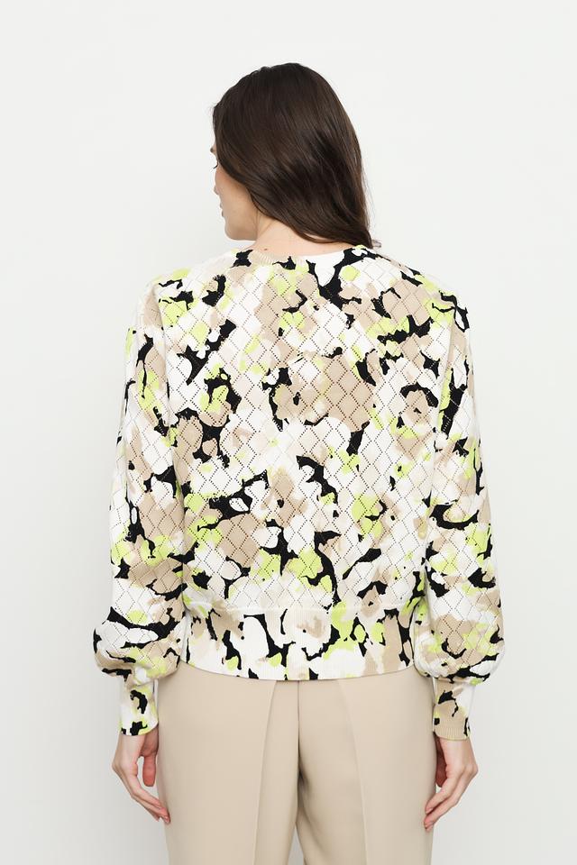 Этот стильный пуловер от Taifun станет прекрасным выбором для создания модных и комфортных образов. Пуловер выполнен в бежевой цветовой гамме и украшен ярким геометрическим принтом, сочетающим в себе оттенки зелёного, чёрного и белого.