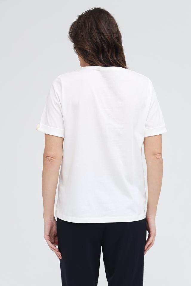 Женская футболка Taifun белого цвета с ярким цветочным принтом. Изготовлена из 100% органического хлопка, обеспечивающего комфорт и воздухопроницаемость. Стильный и удобный вариант для повседневного образа. Состав: хлопок органич. 100%