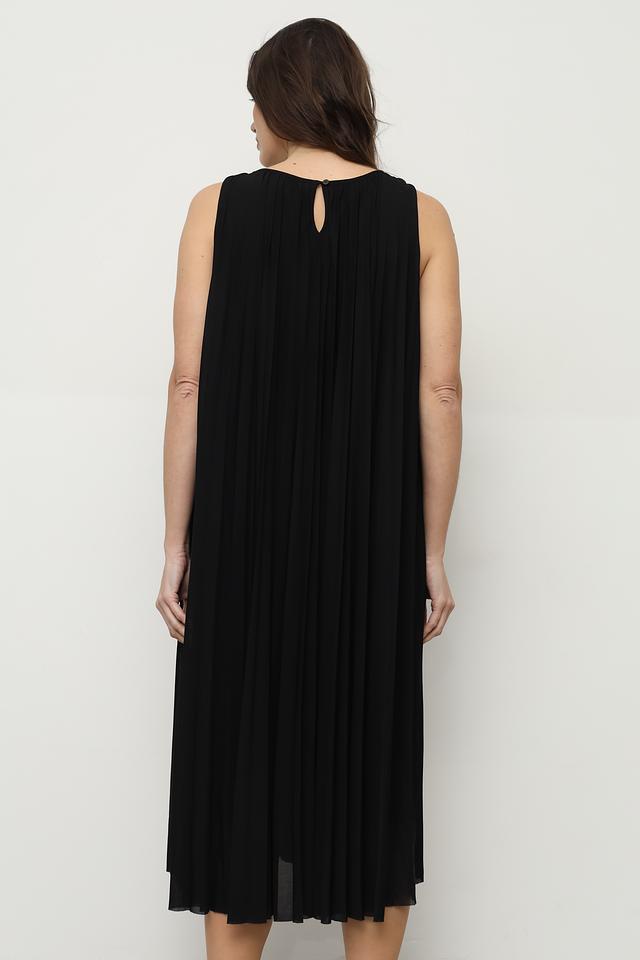 Это платье от Taifun – прекрасный выбор для тех, кто ценит комфорт и элегантность. Выполнено в классическом чёрном цвете, оно легко сочетается с различными аксессуарами и обувью.
