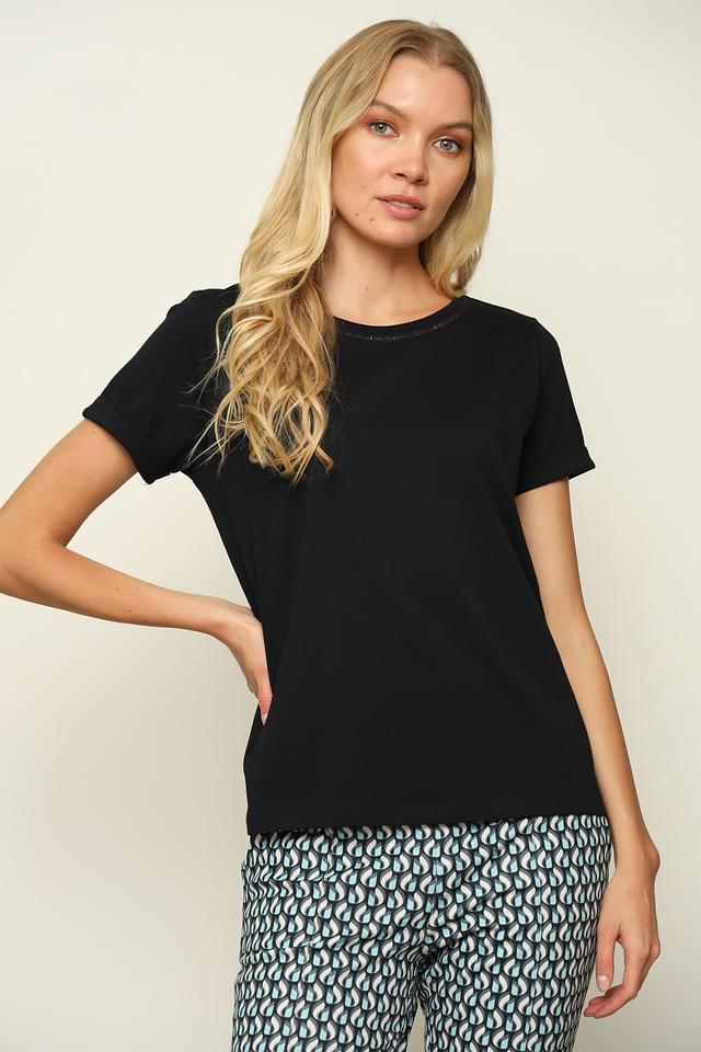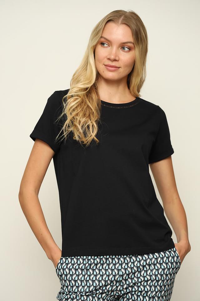 Эта футболка от Taifun выполнена из высококачественного органического хлопка, что обеспечивает максимальный комфорт и приятные ощущения при носке. Классический чёрный цвет делает её универсальной и подходящей для создания различных образов.