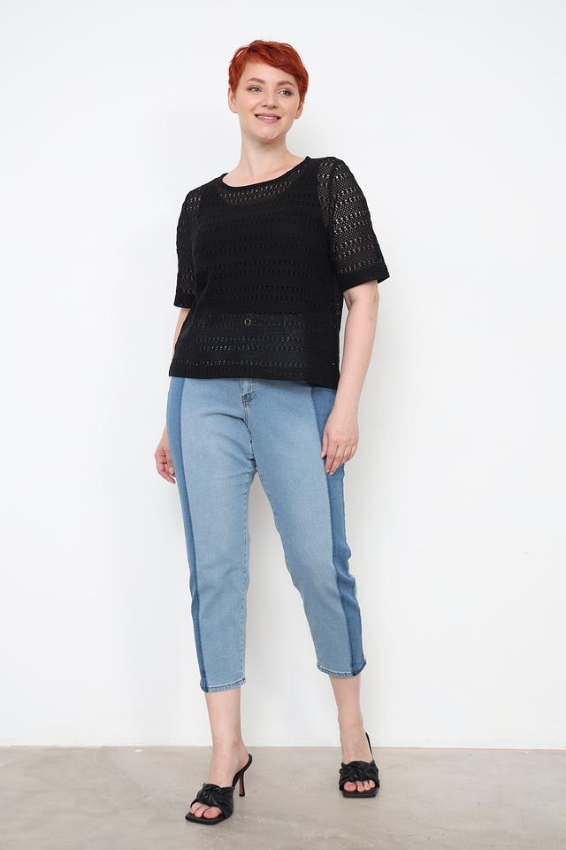 Женские джинсы Taifun голубого цвета с комбинированным дизайном и высокой посадкой. Модель выполнена из хлопка с добавлением полиэстера и эластана для комфорта и лучшей посадки. Состав: хлопок 65%, полиэстер 33%, эластан 2%